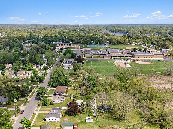 A Modern Mid-Century well maintained three Bedroom one Bath home in the Village of Spring Lake. Extra large 75' x 300' lot near the edges of the Grand River. Living Room with wood burning fireplace. Large three Season room. Beautiful hardwood floors in two Bedrooms. Newer Gas Oven Range, Stainless Refrigerator, Washer, Hot Water Heater, Shower Ensemble, Roof, and some Vinyl Windows. A few blocks from Schools and downtown Village. Property to be sold ''AS IS''. Seller to make no repairs.