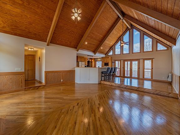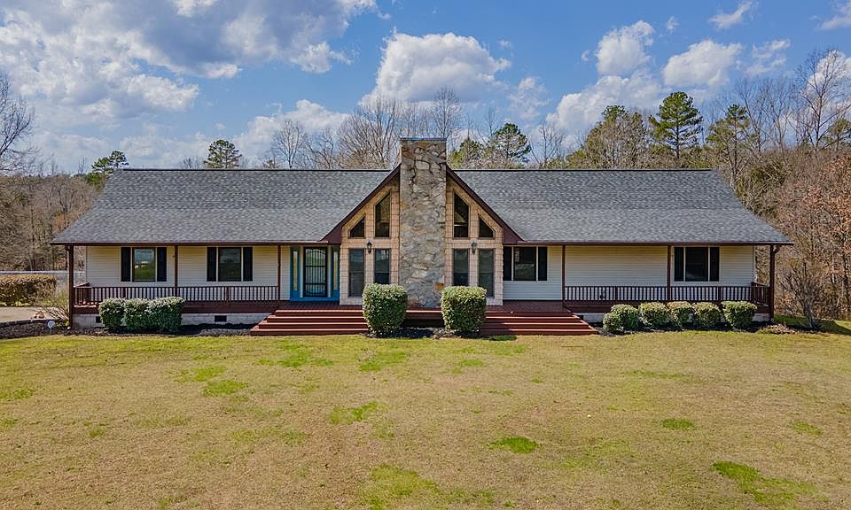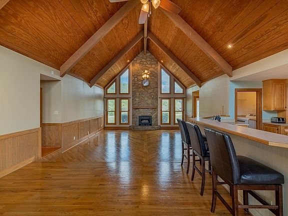 Hard to find home in the country with acreage. Beautiful, open floor plan home. Tall cathedral wood ceiling in great rm, dining and kitchen. Kit includes all appliances, has work desk, pantry and center island. MBR with 2 walk-in closets plus a built-in wall cabinet for extra storage. Outside is where most will enjoy. 4 level back deck with 1 section covered. Front porch extends end to end. Fenced backyard has 27' above ground pool and utility building. Property backs up to creek in backyard.