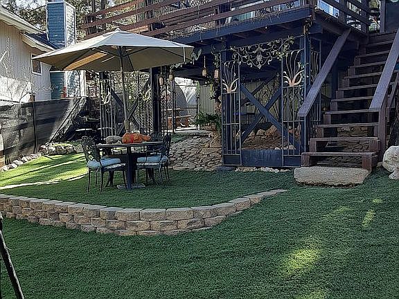 Park your car in the garage and enjoy this cozy A-Frame mountain home nestled in the pines near Big Bear Lake in southern California. Relax in the park like fenced in back yard or take in the view on the huge deck while barbecuing your favorite delights. Enjoy the view from the loft as you look out through the vaulted ceiling and out the huge windows across the numerous up-stretched pines. Lounge in the large master bedroom or rummage through the huge walk in closet. Feeling outdoorsy, grab your hiking shoes or mountain bike and hit the trails in the beautiful forest only a block and a half away. There is plenty of space for your friends to park when they come to visit, there is nothing like the cool fresh air on a sunny mountain day. More pictures inside and out coming soon. Pre-Qualified buyers only.
