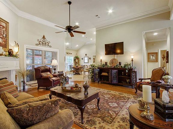 This fabulous French Acadian style split-plan is a spacious 2764 square feet and is complete with four spacious bedrooms, paired with three full bathrooms and one half bathroom. Upon entry, you can't help but admire this great open plan with soaring ceilings and large windows throughout, providing tons of natural light. An upscale chandelier hangs above the formal dining area. The gourmet kitchen plan includes custom stained-wood cabinetry, granite countertops, stainless steel appliances, an eat-up bar and a separate breakfast area for casual dining. The master suite is oversized with plenty of space for a complete bedroom set and more. The master bath features a corner jacuzzi tub, separate shower, walk-in closet and double vanities. All bedrooms are of generous size, and the two downstairs guest rooms are joined by an ideal jack & jill bathroom with one of the walk-in closets being a safe room. The fourth bedroom is so spacious that it could double as an upstairs bonus area/media room if desired! The large utility room is the ideal spot for storage with tons of cabinets and counter space, and it also includes a sink. This home is only made more attractive by its amazing, designer outdoor living spaces! Relax inside the peace and privacy of the large screened-in back porch, or enjoy the beauty of the custom stone patio, which boasts an outdoor fireplace! The large back deck leads up to and surrounds the luxurious outdoor hot tub, which is also surrounded by professional stone work and gorgeous landscaping. All situated on a beautiful tree-shaded lot! Everything that you could possibly want in a home & more! Call today to preview for yourself!!