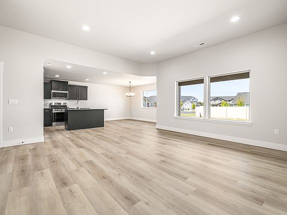 Airy open space in the 1598 floor plan seamlessly connects the kitchen and great room, while maintaining a warm ambiance in the dining area for memorable gatherings. The kitchen offers an L-shaped layout, offering ample counter space, a convenient island, and a discreetly tucked pantry with custom wooden shelfing. The entry hallway provides extra storage with a coat closet and linen closet. Retreat to the primary suite at the opposite end of the home, featuring a spacious walk-in closet and a luxurious bathroom. Two additional bedrooms share a tub and shower combo bathroom on the opposite wing.