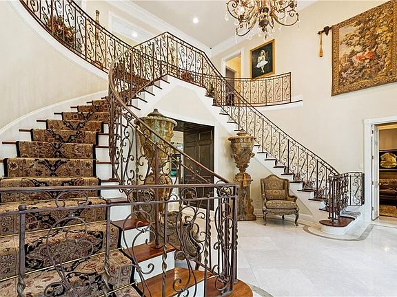 This stunning executive home on an estate size lot in Timberlane Estates has every imaginable amenity. A grand double height entry foyer with dual sweeping staircases that lead to two separate guest wings on the 2nd floor sets the tone for this gorgeous home. The ceiling height of both all 3 stories is 10' except for the double height living room and foyer. The expansive first floor includes a two-story living room overlooking the outdoor area, an executive office, a beautiful formal dining room with a designated china nook, a large chef's kitchen with 2 islands and Wolf appliances, breakfast area, 1st floor primary suite, laundry room, 3 half baths, TWO climate controlled 2 car garages (one contains a second kitchen and washing station) and a literal outdoor Oasis. The luxurious 1st floor primary suite boasts an extensive spa bath with walk in shower, roman bathtub, dual vanities and dual walk-in closets. The second floor consists of two separate sleeping wings each with two bedrooms, oversized walk-in closets and a shared bath plus a second laundry room. A 2014 renovation added a second-floor gym, playroom and a 3rd floor professionally designed 15 seat movie theater complete with its own receiving area, concession lobby and half bath. Additional structural improvements accompanied the renovation to ensure ongoing stability of both the structure and foundation. Outside you will find an extraordinary entertaining area with a large loggia with multiple seating areas, a heated pool and spa, towering wall fountain and an outdoor kitchen equipped with grill, pizza oven, ice maker and a flat screen TV that can be concealed in the cabinetry when not in use. A 45 KW liquid cooled generator powers the entire property and there is a state-of-the-art audio and visual security system with multiple monitoring stations. A full list of improvements and amenities will be attached soon. This is a must see signature property.