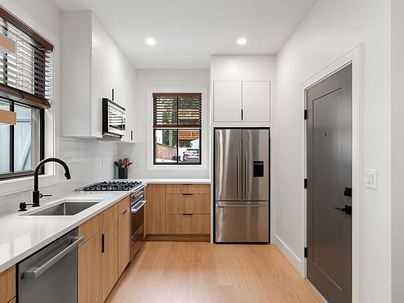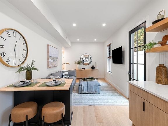 Central air conditioningGlass-enclosed tiled showerPrivate rear patioOpen concept livingModern kitchenSleek slab cabinetryQuartz countertops