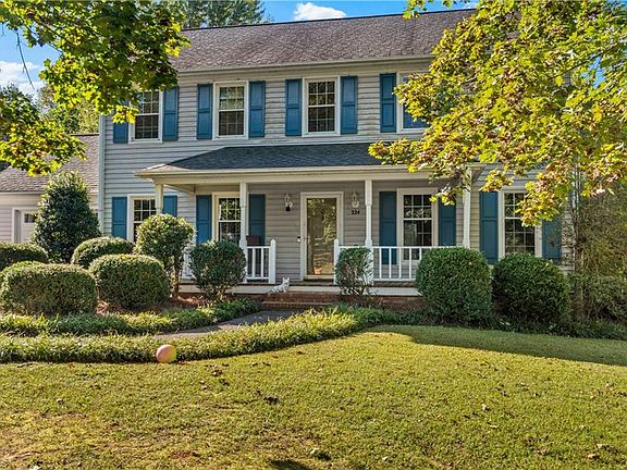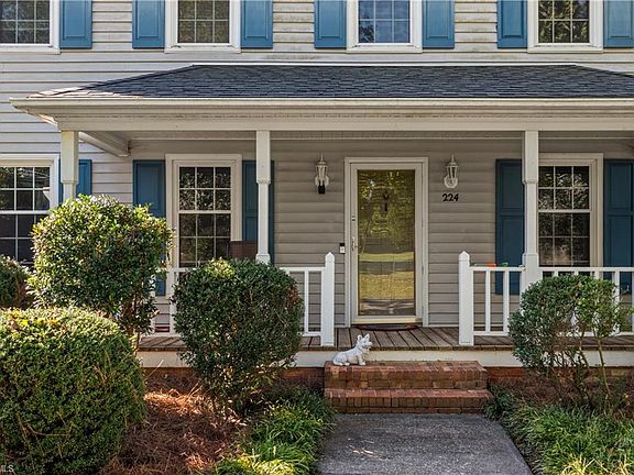Welcome to North Hampton! Two story traditional style home in King ... Step onto your Covered Front Porch ready for you to embrace those cool weather, coffee sipping mornings ... Step inside your new home offering flex space for Office/Formal Living Room/Playroom... Den with Fireplace...Kitchen w/Corian countertops & Breakfast area... Formal Dining Room too... Laundry Closet on Main next to garage access door... Upstairs offers Large Primary Bedroom with 2 walk-in closets, Primary Bath with Double Sinks, Walk-in Shower and Garden Tub... Hall bath with single sink and tub/shower combo just outside the two secondary bedrooms.. Hall Linen Closet... Now let's step outside to the back of the home where you will find an Expanded Deck with Storage Room, Above Ground Pool, Double Lot Fenced Backyard - great for keeping the pups separate from the pool/play area, and Storage Building in the far back too ... Paved Driveway... Shaded far Backyard ...1 Car Attached Garage