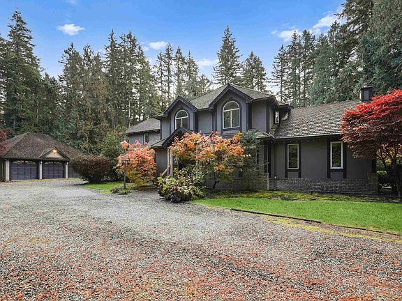 Absolutely gorgeous executive entertainers dream home. Located on totally private 2.38 Acres in the heart of Brookswood. Previously completely renovated with no expense spared. Large custom kitchen w/island, breakfast bar, granite counters, s/s appls, separate salad sink & 2nd wall oven. Large open plan with maple flooring on main free standing curved staircase. 4 bdrms up w/3 ensuites, including a deluxe primary w/5pc ensuite, walk-in closet, f/p & private deck. There is a 78x25 sundeck with multiple accesses form the main floor. Fully finished bsmt with gym, kitchen & maple walls in billiard room. 40x32 insulated shop, 40x40 sports court & lots of extra parking. All this on 2.38 flat, no creeks Acres. Designated for 5000sqft lots. Live in luxury while development is around the corner!