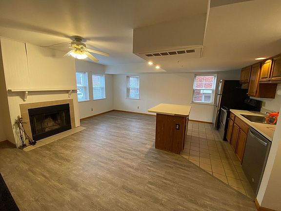 This modern 2 bedroom townhouse features a kitchen with an island and dishwasher! Spacious living and bedroom areas, decorative fireplace, bathroom with ceramic tile and spa-style tub.