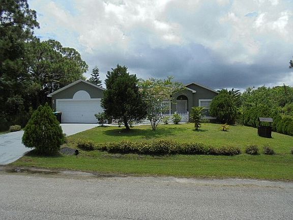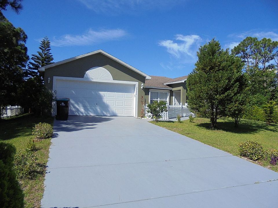 he original owner has been happy living in this one story 3 bed/2 baths ''Holiday Builders'' model, located on a private lot in SE Palm Bay. Close to Bayside lakes and ready to move in to. New homes are being built all around this one. The home has 8' vaulted ceilings in the living area and neutral tiles throughout with carpeting in the bedrooms. 30'' Maple kitchen cabinets and room for additional cabinets. The master suite bathroom was upgraded by the builder to include a larger walk-in closet and garden tub and separate shower. The exterior of the house has been recently painted. Patio slab and covered porch were added. Plenty of parking on the concrete driveway (up to 640 sq. ft.) Hurricane Shutters. Vinyl fencing surrounding the large back yard.