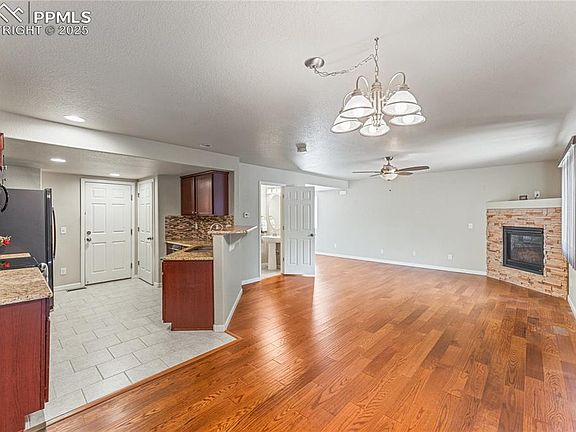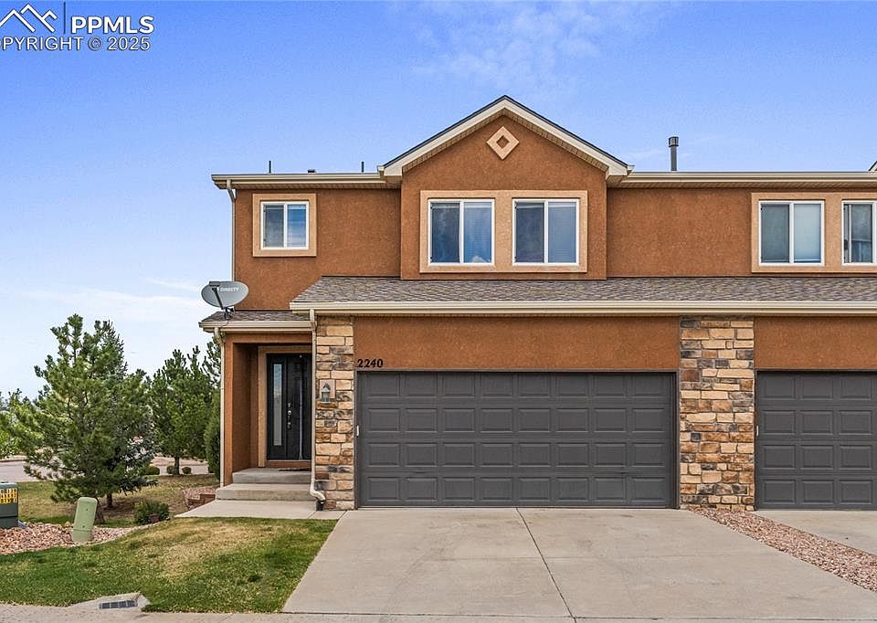 Welcome home to this beautiful three bed, two full baths, and two half baths, two car garage Townhome. This end unit offers maintenance free living with beautiful views of Pikes Peak. The main floor offers, an open layout with a breakfast bar perfect for entertainment. Enjoy dinners in the dining room or coffee on the porch. The outdoor deck perfect for grilling or just enjoying a great summer afternoon watching the sun set. Enjoy a night in the living-room with the gas fireplace perfect for some relaxing time. On the second floor you will find two bedrooms and the Master bedroom with an attached master bath and a large walk in closet. The large basement perfect for additional entertainment just another great room to enjoy. This basement also offers another bathroom and additional storage. Now don't forget about the garage fully equipped with mats and a storage rack. Roof replaced July 2024. This home is located in a great community centrally located and close to shopping, restaurants, malls and lots of entertainment. Schedule your appointment today.