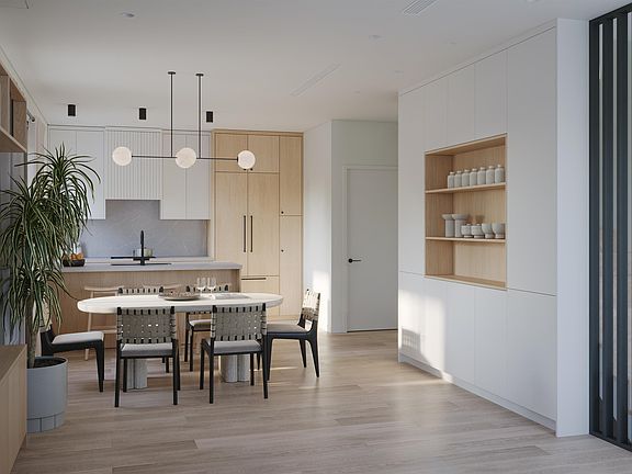 Japandi-inspired interiorsPremium cosentino quartzCustom millworkTriple glazed windowsFunctional kitchen with peninsulaPremium bosch appliance package