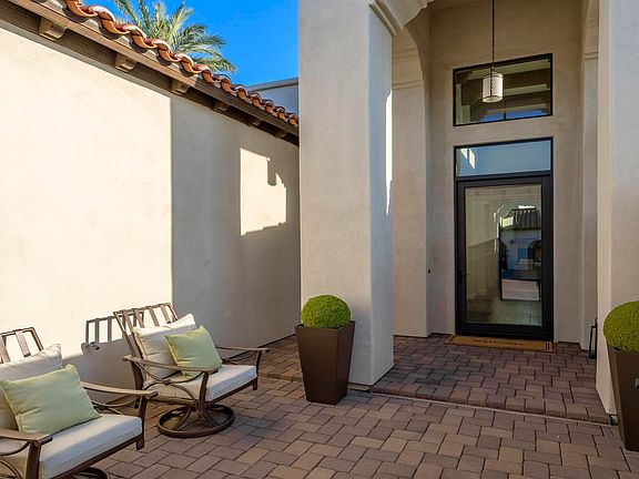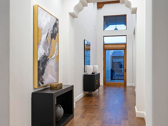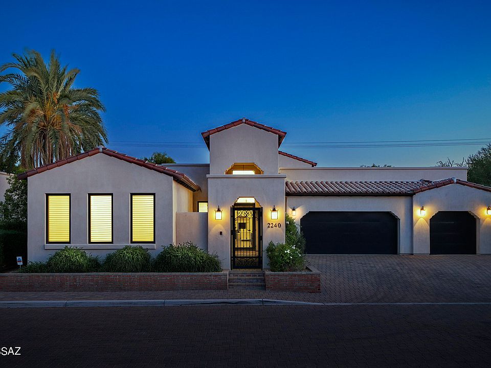 This stunning and dramatic Santa Barbara fashioned residence, offers a modern open layout and seamless connectivity between the individual living spaces. Located within steps of the famed Arizona Inn (National Register of Historic Places), this exquisitely designed residence is a showpiece of architectural prowess and sophistication. Enter through a private courtyard into the beautifully appointed interiors, with soaring ceilings that open onto the generous living and dining space. The stunning chef's kitchen, complete with top end Monogram pro series appliances, features a large center island, fitted with Quartz countertops, adjacent to the walk-in pantry. The primary bedroom is designed to feature a spatial layout that emphasizes both privacy and openness. An en-suite bathroom integrates seamless transitions between materials, with uniformed tile flooring, hand-crafted vanities, and a frameless glass shower enclosure, creating a cohesive yet understated elegance. Subtle lighting enhances the room, emphasizing the simplicity of form and materials, while also serving a functional purpose, providing ambient and task lighting.