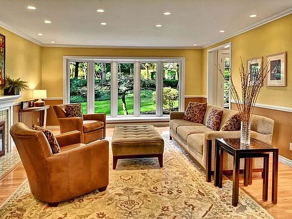 **PENDING FULL INTERIOR WHITE PAINT, NOT SHOWN IN PHOTOS. All interior walls to be painted fresh white** Elegant Medina Residence on Coveted Evergreen Point Road Nestled on a generous, private lot along one of Medina's most sought-after streets, this timeless home blends traditional craftsmanship with thoughtful updates. Gleaming hardwoods flow throughout, uniting bright and airy day rooms perfect for hosting or everyday comfort. Central air conditioning for year-round comfort! Welcoming formal living room with fireplace opens to a gracious dining room. The updated kitchen is a delight, showcasing stainless steel appliances, granite countertops, and freshly painted cabinetry. Highlights include a Viking gas range and a beverage fridge. The chef is always part of the action thanks to the adjoining to family room featuring the home's second wood-burning fireplace and access to expansive entertainment-sized deck overlooking the lush grounds perfect for summer grilling and playing in the back yard! An office, powder room, and convenient entry into the home from the 2-car garage complete the main floor offerings. Upstairs, the elegant primary suite is crowned by a light-filled bath sure to please. The three additional bedrooms are all generously scaled and share an updated hall bath with double-sink vanity. Laundry on the bedroom level adds everyday ease. Private, landscaped grounds are yours to sit back and enjoy, as landscape maintenance is included! 2 car attached garage with EV outlet! One small dog considered with nonrefundable pet fee - no cats, thank you. No smoking. Served by top-rated Bellevue schools and surrounded by world-class shopping and dining, this premier Medina address offers an in-city oasis just minutes from downtown Bellevue and I-90 for quick, convenient access to Seattle. Move in costs include a refundable security deposit equal to one month's rent, first month's rent or prorated rent, last month's rent and a nonrefundable cleaning fee of $1,000. #AvenueOneResidential #luxuryrentalsbellevue #downtownbellevue #Medina #clydehill