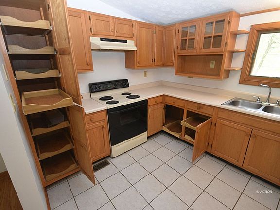 This 3 bedroom ranch doesn't need anything done. Living room and hallway have NEW 3/4'' Oak flooring, all bedrooms have new carpet, completely painted interior. Large open, kitchen/living area. Kitchen cabinets have pull out shelving in almost all of them. Tile flooring in kitchen and bathroom. Solid wood 6 panels doors throughout. Covered front porch, large rear deck with composite deck boards. Nice, bright 1/2 acre yard for playing or gardening. Large 2 car detached garage and small shed behind the garage. About 7 miles to Richland Ave. on old 33. You can just barely see a neighbor.