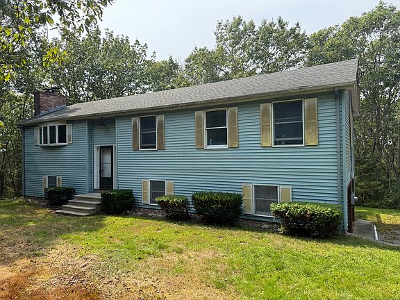 This 1990 raised ranch sits off the road on a shared driveway with 5.64 acres of privacy. 3 BDRS, 3 baths, LR with brick FP and bay window, DR with slider to deck with bench seating. Kitchen with side by side refrigerator and D/W. Lower level is partially finished with brick hearth with insert for pellet/woodstove and full bath. Oversize 2 car garage. Electric heat. With 628 ft of road frontage the lot may be subdividable.