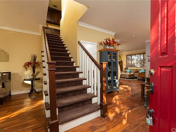 Serious seller, ready to move yesterday. Lovely gated community home with wonderful curb appeal. The entry opens to an attractive staircase & warm living room for intimate gatherings, or music room. Dining area adjoins the living room & spacious family room with wood burning/gas fireplace, & engineered hardwood floors throughout the first floor, provides a continuous flow. The remodeled kitchen with solid wood cabinets, granite counters, and stainless appliance looks upon the family room and beautifully appointed yard. The French doors lead you to the newer jacuzzi spa, BBQ island seating area, & succulent garden. The 2 car attached garage has direct access and your main floor powder room complete the first floor. As you ascend the craftsman style, wood spindled staircase you have 4 bedrooms all with ample closets. The Master suite is bright, large and private. There is a charming reading area/office which is part of the master suite and a small balcony to enjoy a respite from a hectic day. This tree top deck overlooks the bubbling spa and tranquil yard. Dual panel windows, custom plantation shutters, crown molding, newer air conditioning compressor and upgraded baseboards. All of this plus the privacy of a gated community in lovely Signal Hill. There are beautifully maintained walking trails, a hilltop park with water views, a park for children, beach and freeway close as well as numerous convenient shopping, dining areas and near by the new retail/restaurant LBX.