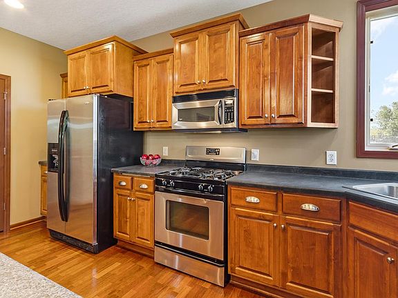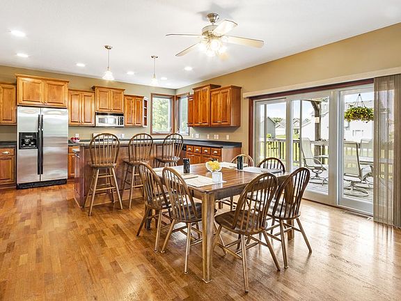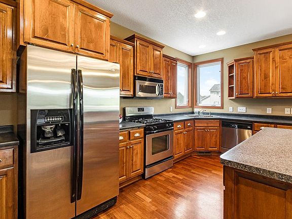 Beautiful 2 story home with over 3,400 finished square feet on a fenced lot overlooking a nature area. This walk out home is finished throughout and hosts 5 beds, 4 of which are on upper level along with upper level laundry for easy convenience, check out the HUGE deck with large paver patio below that is set up for hot tub, front covered porch with pond, 3 car garage, open floor plan with generous sized kitchen complete with center island - stainless steel appliances and a pantry that's truly large enough to walk in, lots of storage throughout this home, private owners suit bath with separate tub/shower, gas fireplace, 4 baths, main floor office/formal dining. Open house 6/3 11:00-1:-00.