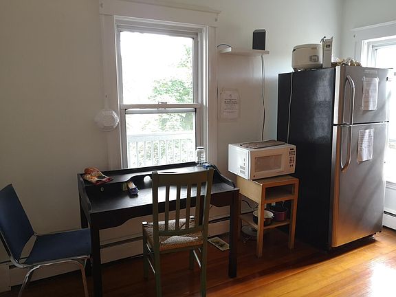 Fully furnished and carpeted 1 bedroom + 1 full bathroom apartment with a street view from 3 windows. The apartment includes a small refrigerator, microwave, desk, closet rack, lamp, and mattress. Renters have access to shared kitchen space and balcony. Monthly rent includes all utilities (wifi, water, gas, electric). No pets or smoking allowed. Off-street parking available. No parking spaces provided. Individual A/C units are available for an extra $100/month. Renter must pay 2 months of rent upfront when signing the lease.