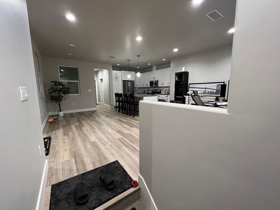 Room with its own bathroom (with shower) and dedicated off-street parking available now for 1600/month not including utilities. 3, 6, or 12 months. A small dog will add $150/month. Seeking a house mate (one renter not 2 or 3, etc) to share a newly built house. The room is with large windows and a glass door to the house's backyard. The room has its own private bathroom and shower, off-street parking spot, a large closet, and a ceiling fan. The house has two levels, two rooms, backyard, 2.5 bathrooms, garage, and off-street assigned parking spot. The offered room and its bathroom are on the first level. Kitchen, laundry (washer and dryer), dishwasher, and my room are on the second level. House is 10 minutes walk from the beach and features nice views to the mountains and is next to Ellwood Mesa Coastal Trail (The trail begins 140 feet from place). The community housing center offers a pool, jacuzzi, and barbecue area that can be accessed 24 hours for free via an electronic key. The house is 2.9 miles from UCSB and a walking distance from Costco. You will be sharing the house with myself and two small (24 and 12 pounds) dogs. I am looking for a house-mate that is organized and clean. No cigarettes smoking.