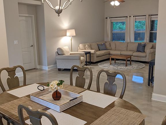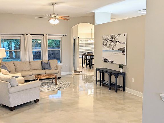 Located in Navarre just 15 minutes from Hurlburt Field and minutes away from shopping, dining, and Navarre's stunning white sand beaches. This open concept 3-bedroom, 2-bathroom brick home offers an attached 2 car garage with ample driveway parking in a quiet and cozy cul-de-sac. The interior features newly painted walls and custom epoxy flooring! A full formal dining room, breakfast nook and two living room areas really make this home feel spacious. The large master bedroom has an en-suite master bathroom with an enormous, luxury walk-in shower, dual vanities and closets. The additional bedrooms are quite roomy and accommodating. The laundry room includes Maytag washer and dryer units for the tenant's convenience. Outside you will enjoy peace and privacy with a large, fenced in yard and no visible neighbors to the rear. Don't miss the opportunity to call this stunning property home! Pets may be accepted upon owner approval with a non-refundable pet fee. Smoking is not permitted on the property. Washer and dryer are included in lease. One-year lease. Military clause. Owner is responsible for all utilities and lawn maintenance. Pets (dog) will be considered on a case-by-case basis. No smoking. Minimum lease of 1-year.