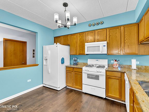 Don't miss this spacious and well-maintained 2-bedroom, 2-bath condo in the highly sought-after Liberty Square subdivision of Lombard! Enjoy quiet living with Flexicore construction, 9' ceilings, and a secured-elevator building. Beautiful hardwood floors run throughout the open-concept living and dining areas, with newer plush carpeting in both bedrooms. The generous primary suite includes two closets-one of them a walk-in-for ample storage. The unit also features newer bedroom windows and a convenient in-unit laundry room with full-size washer and dryer. You'll love the eat-in kitchen with sleek granite countertops, perfect for casual meals or entertaining. Included with the unit are a heated garage parking space (Space D) and private storage unit #307, plus plenty of guest parking. One of the lowest HOAs in the area. Prime location near shopping, dining, parks, and all the best that Lombard has to offer!