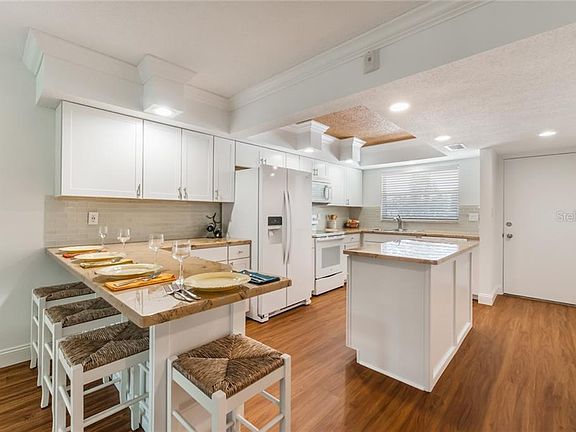Located less than 1.5 miles from the world famous Siesta Key Beach. This second floor 2 bedroom, 2 bathroom condo has been recently renovated with top quality materials and tasteful design, no detail was left behind. The open floor plan is perfect for entertaining. The kitchen offers plenty of storage with an island, brand new wood cabinets, new appliances, and epoxy custom counter tops. Enjoy the lush garden views from the living room or the paved screened balcony. In the cooler nights of winter warm up with the electric fireplace. The master bedroom boast brand new carpet, large walk-in closet and en-suite bathroom with new redesigned tiled shower. Both bathrooms have new vanities with vessel sinks, new lights and framed mirrors. A private car port conveniently located in front of the building is assigned to this unit. Tregate Manor is a 55+ community that offers an elevator. same floor laundry and storage, trash shoot for easy disposal, and a screened in heated pool surrounded by mature beautiful grounds. Close to shopping and restaurants in the Gulf Gate area with a direct access through a private gate in the rear of the property. Just minutes away to the newest Detwiler's' Farm Market. See feature sheet for all the recently updates.