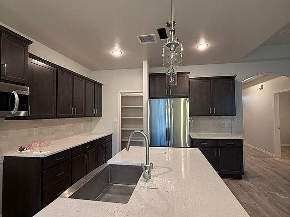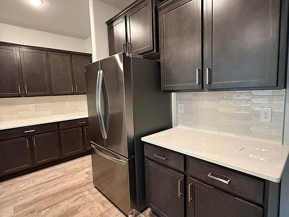 This Energy Star Certified home offers 3 bedrooms, 2 baths, a split floor plan, and a 2-car garage, blending modern design with top efficiency. Enjoy wood-look tile, tiled showers, granite counters, stainless steel appliances (fridge included), and stylish hardware. Built for energy savings, it features 2x6 exterior walls, blown fiberglass and spray foam attic insulation, low-E double-paned windows, a high-efficiency HVAC, and an energy recovery ventilator--making it nearly twice as efficient as standard new homes. The open kitchen boasts a large island, plus a dedicated laundry room. The primary suite includes double sinks and a spacious walk-in closet. Relax on the covered front porch or back patio. Includes a garage door opener with two remotes. A perfect mix of style, comfort, and efficiency--schedule your showing today!