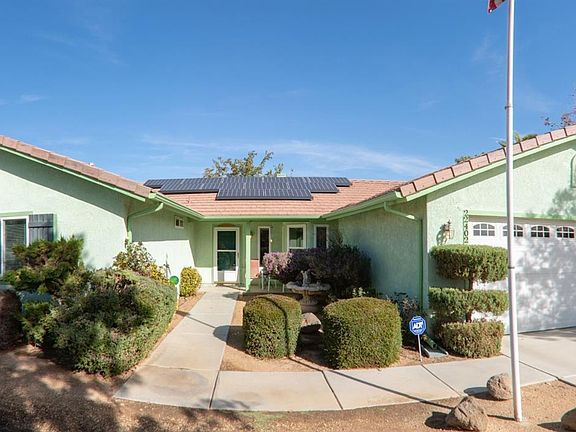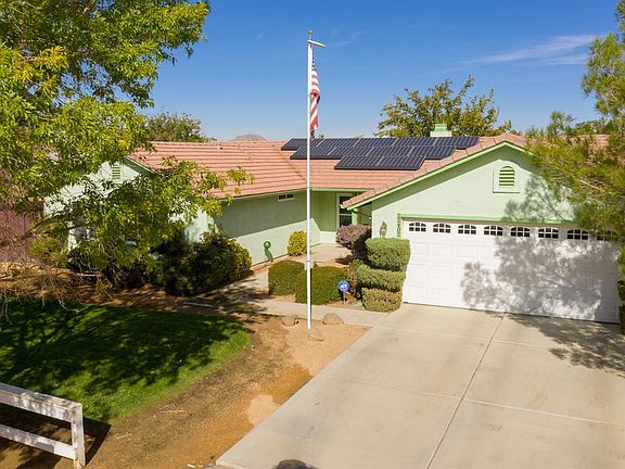Opportunity Is Knocking! Corner home on a nice cul-de-sac in Apple Valley. Lovely landscaping draws you into this beautiful home. Interior has vaulted ceilings, wood laminate & tile flooring + plenty of windows letting in natural light that were all replaced just a few years ago. Formal living room, family room w/brick fireplace, Formal dining room + kitchen nook, updated kitchen w/Corian counter-tops & pantry, Master bedroom w/walk-in closet + 2nd closet, Master bathroom w/double sinks, oval tub & separate shower, 2 guest bedrooms & guest bathroom w/tub/shower combo, extra cabinets & linen closet in hallway, in-door laundry room w/storage cabinets, 2-car attached garage w/automatic opener, storage shed, Covered back patio + extensive brick work sidewalks & planters, fenced yard, RV parking, tile roof, tankless water heater & solar to cut down cost of utilities. Ceiling fans thru-out. Alarm system. Updated light fixtures, baseboards, kitchen appliances, toilets, faucets & hardware.
