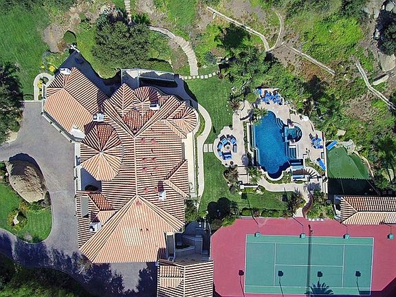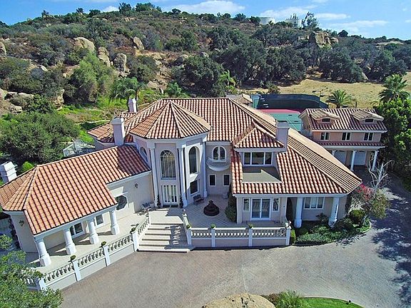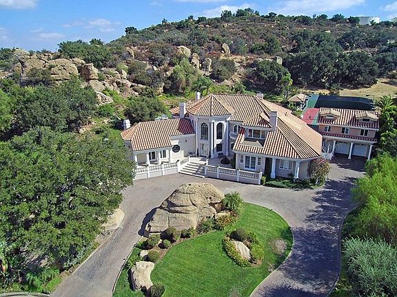 This custom built Mediterranean Estate, known as Hummingbird Hill, is nestled within the posh guard gated Indian Falls Community of Chatsworth. Built among the majestic oaks and inspiring rock formations, the secluded property affords a far-away feel while still being close to the city. Formerly a part of the Iverson Movie Ranch of yesteryear, this celebrity owned home is being offered for the first time. Approximately 7000 square feet of high-end, luxury living for the discriminate buyer looking for that truly magical property.A grand formal entry with sweeping staircase welcomes you to this truly one-of-a-kind home. Adjacent is an opulent parlor with one of five fireplaces adorning this hidden treasure. The expansive, yet cozy family room is crowned by a vaulted ceiling with exposed beam work and a generous granite-topped bar. Then take the staircase down to the underground wine cellar.Upstairs you will find a master suite complete with a private patio, sitting area, and petite wet bar. The master bath features an enormous jacuzzi tub, his and her's sinks and water closets. A separate dressing room, complete with creamy marble-topped vanity, leads to a generous walk-in closet with island and custom built-ins. This exceptional property boasts far too many features to list here. A small sampling includes 7 garages, a detached guest suite, infinity swimming pool with spa and swim up bar and a tennis court. Don't miss the hill-top lookout with a breathtaking view.