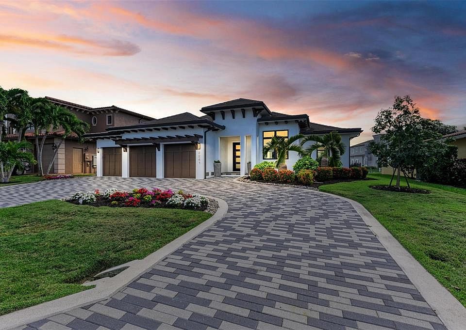 Luxurious 2018 WATERFRONT CUSTOM POOL HOME with a SOUTHERN EXPOSURE & LONG WATER VIEW, including 3 bedrooms, 3 bathrooms, a den, a true 3 car garage, a full-size new dock and concrete seawall, a stunning spa and pool, a WHOLE HOME GENERATOR, and so much more awaits new owners in Punta Gorda Isles, just minutes out to Charlotte Harbor via a deep water sailboat access canal! High-end appointments throughout include Bosch, Miele, Thermador, & Wolf appliances including propane connection, Impact Hurricane rated windows & doors, porcelain tile floors and custom tilework throughout, Cambria Quartz counters, contemporary lighting, faux accent walls & trim work, crown molding, custom window coverings, a full security system, surround sound, & landscape lighting, to name a few. From the outside recognize incredible details, including a large circular paver driveway, a custom front door, corbel detailing in the soffits and upgraded landscaping. Inside, enjoy a thoughtful design, with the den/office to the right of the foyer, a spacious great room with beautiful ceiling details open to the gourmet kitchen with under cabinet lighting, a gas cooktop with range hood, separate conventional and steam ovens, and a walk-in pantry. Also connected to this space is the beautiful dining room with large built-in cabinetry with electricity and tons of storage, perfect for entertaining. Enjoy a wall of sliding glass doors that pocket to open to the luxurious lanai with tumbled marble pavers, an outdoor kitchen with grill, and an infinity edge spa connected to the linear heated pool, all overlooking the beautiful long water view through the panoramic screen cage. Farther outside, find 2 separate marble patio areas, a fenced yard with landscape lighting, and a full-size NEW concrete dock with Slidemoor system, davits lift for dingy, and a new seawall! Back inside, to the right of the living space at the front of the home, enjoy a guest suite with en suite walk-in closet and stunning bathroom with shower with custom tile work. Overlooking the water on the same side, find another guest bedroom with sliding door access to the lanai and a guest bathroom nearby, which is also connected to the pool and living areas for convenience. On the opposite side of the home, the owner's suite is INCREDIBLE with beautiful views of the backyard and waterway, custom ceiling and faux details, direct access to the pool, and has an ensuite bathroom with undercabinet lighting, a spacious shower with glass enclosure and custom tile work, dual vanities, a makeup counter, and a private water closet. Farther in, enter the FABULOUS closet with center island and custom organizers throughout, which also connects to the laundry room with extra cabinetry. The hallway off the laundry is near the entrance to the 3 car garage with oversized space and tons of storage, along with a newly epoxied floor. This home is nearby to downtown Punta Gorda, the Isles Yacht Club, Fishermen's Village, and all that Punta Gorda has to offer! Be sure to ask for the FEATURES SHEET & FLOOR PLAN and schedule your showing today!