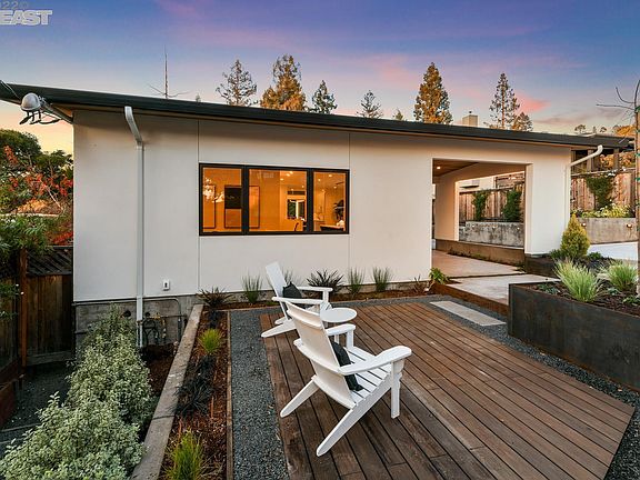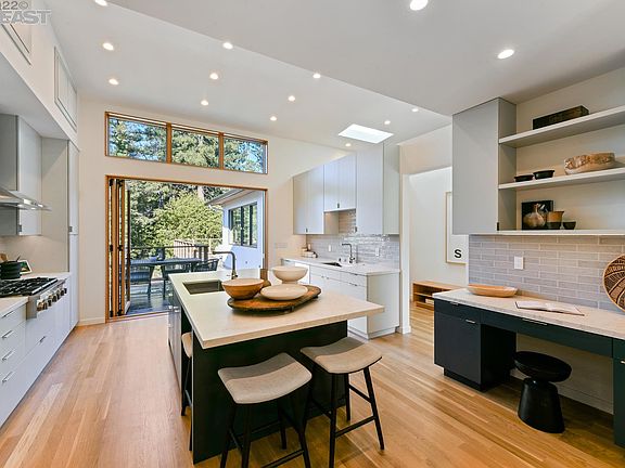 Exquisitely designed by an award-winning local builder, 2241 Glen Avenue is a uniquely flexible 4+BD/3++BA, 4432 square foot custom Modern awash in the music of a burbling waterfall on Codornices Creek yet just steps from Berkeley’s coveted Gourmet District. Thoughtfully designed for maximum flexibility and beautifully crafted with no expense spared, the home’s open floor plan allows for single-family living but could be configured to create as many as three gracious living spaces. This rare level-in home features an expansive level rear yard with a huge patio and z-fold glass doors that open onto a large deck, providing a dazzling indoor/outdoor flow. Sun-washed rooms, multiple bonus spaces, and spa-like baths create the feel of a private retreat, and the magnificent chef’s kitchen was designed with entertaining in mind. The spacious primary suite includes a luxurious bath, and a second suite might serve as an internal in-law or guest dwelling unit with kitchenette and laundry room. Timeless and elegant, the home features modern, clean lines and sophisticated details including white oak floors and custom cabinetry. Practical amenities include 7-zone radiant heat, voice-activated Smart systems, Nest thermostats, two on-demand water heaters.