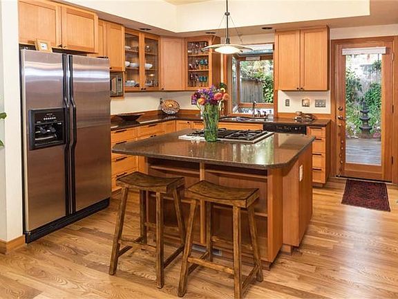 Hand-crafted home w/attention to detail on all finish work. This is a Must Preview property. Solid fir doors & custom clear vertical fir cabinets. Ceiling fans in all bedrooms, living room & office. Great room floor plan/wood floors & a fireplace surrounded w/audio/video cabinetry. Large master bedroom w/walk-in closet w/built-ins & bath w/all the extras. Mature landscaping w/paver paths, raised rock beds full of perennials, trees for shade & privacy. Close to downtown w/lots of parking for quests & toys.