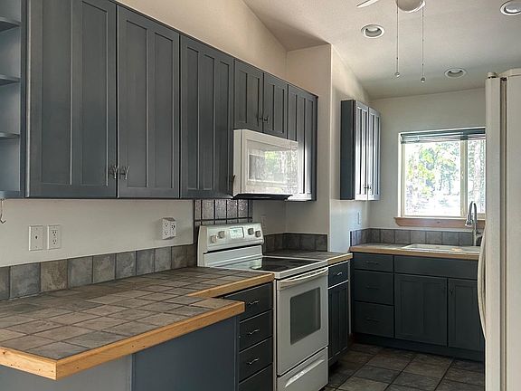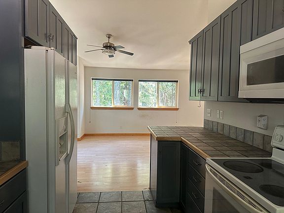 Welcome to this 1 bedroom, 1.5 bath, 2 story home nestled in the trees at Greenhorn Ranch. Enjoy the spacious living room featuring vaulted ceilings w/fan, 3 large picture windows that blend the indoor with the out door living space-perfect for family & friends to gather. Galley style kitchen is equipped with a electric range, microwave, refrigerator, and generous amount of cabinet space. Spacious primary bedroom with walk in closet. Outside, there is a 2 car attached garage with a room that could be used as a office or second bedroom, covered patio with concrete walk way to the entrance. Come take a look!