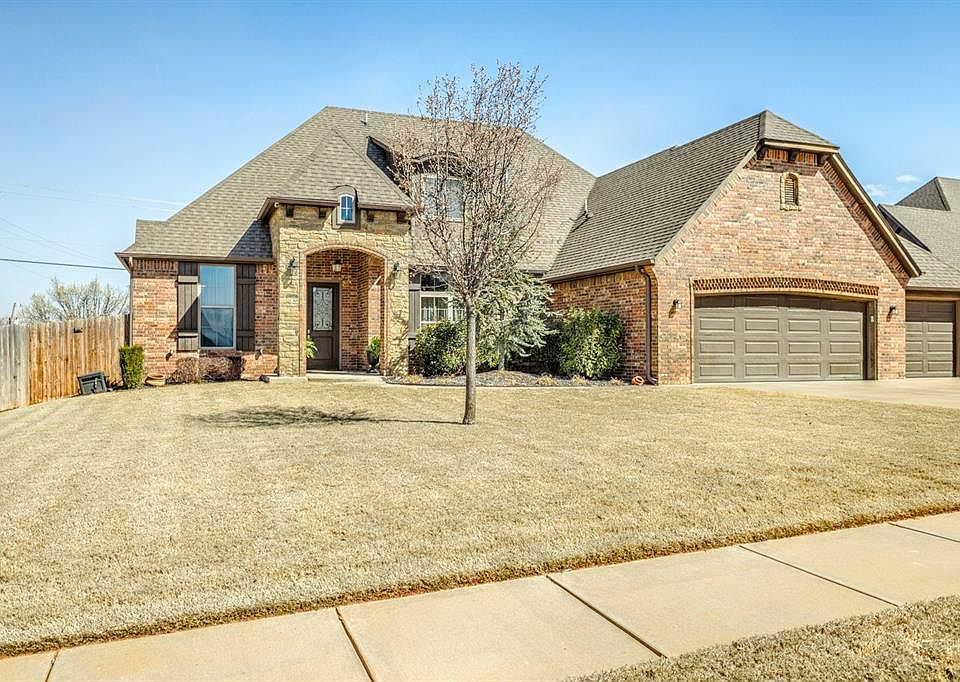 Welcome to this beautifully designed 4 bedroom home with a versatile bonus room, located in the heart of Mustang. This custom-built property offers open concept layout with a spacious living area with abundant light. The kitchen features a large island, breakfast bar, ceiling height cabinetry, and generous storage. The primary suite includes a spa-like bath with dual vanities, walk in shower and a private door leading to the hot tub which remains with the home. The downstairs has 2 full bathrooms and a powder bath. Upstairs, the flexible bonus room includes a half bath that could easily be upgraded to a full bath. The three car garage offers epoxy floors, storm shelter, backyard access through a rear overhead door and a mini split for climate control. Additional features include a mud bench, utility sink, attic storage, room to add additional square footage. Located on a quiet street with easy access to schools, shopping and dining. This home is one exceptional package!