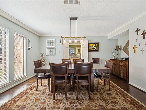 Extensively updated home in the heart of Williamsburg less than a block from the pool & tennis courts. The home features a resort style backyard with the brick paver covered patio off the breakfast & family rooms overlooking the replastered pool & spa that are flanked by a pergola covered sitting area & summer kitchen and a firepit with seating on the opposite side. The slate flooring in the entry flows through the family room into the breakfast area, kitchen and utility room. The dining room features hardwood flooring. The updated kitchen has the sink and dishwasher in the island, granite countertops, tile backsplash and double stainless convection ovens. The primary bath has been updated and has lots of natural light with glass block windows open to a brick walled courtyard. The floor plan offers two master suites, one on each floor. The original galvonized pipe was replaced with Pex, the main breaker panel is new, the roof was replaced in 2023 and there is a full sprinkler system.