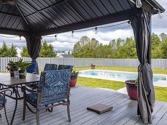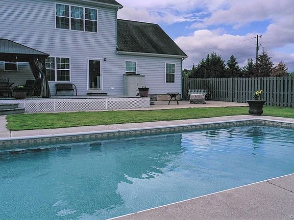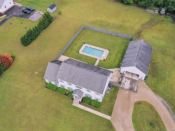 UNBELIEVABLE home! This amazing 2-story vinyl home has so much to offer. The first floor features 9ft ceilings, luxury vinyl plank flooring, stately columns, great room with a stone fireplace, double ceiling fans, and French doors, formal dining room with chandelier and tray ceiling, a FANTASTIC eat-in kitchen that features plenty of Corian counters, custom back-splash, 5-burner gas range, and a pantry. Also on the first floor is the laundry room, a half bath, and the 1st floor master bedroom with a very large walk-in closet and private bath with double vanity. The 2nd floor offers the 2nd spacious master bedroom, with a sitting area and private bath, 2 additional large bedrooms, another full bath, and an additional room that would be perfect for a 5th bedrooms, office or play room! There is 2-zoned electric heating and air, a circular driveway, a 4-car detached garage, a spacious rear deck, a dog kennel that conveys, and a 28X16 saltwater in-ground fenced swimming pool! All this on 3.43 acres that are partially cleared, partially wooded - perfect for rural living, but with the convenience of being in a WiFi zone that's close to Fort Lee and surrounding cities. Come see it!
