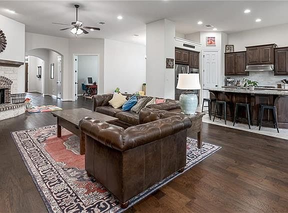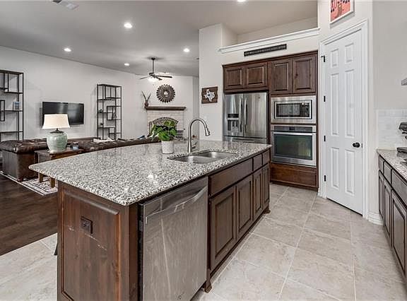 Stunning home located walking distance from LTISD Elementary School. Marvelous Texas stone and brick exterior with a spacious three car garage. Warm rich hardwood flooring throughout living areas and office. Open concept floor plan with large windows overlooking the well maintained backyard. Kitchen has oversized tile, and granite center island, SS appliances, warm wood cabinetry and upgraded light fixtures. Ceiling fans in all bedrooms. Master bath has dual vanities and extended countertops.