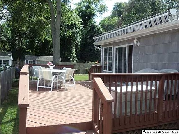 This charming home offers 1800++ sqft with 3 bedrooms and 2 full baths w/ attached garage. Beautiful dark hardwood floors throughout lead to huge 16x25 bonus room w/ wet bar for entertaining. Home has newer roof, well pump for sprinkler system, and central air. Large 15 x 23 deck w/ electric awning overlooks nicely landscaped over-sized 150ft deep back yard with shed and privacy. Home has excellent curb appeal and is larger than it looks. Close to Pt. Pleasant and Bay head beaches. A must see!!