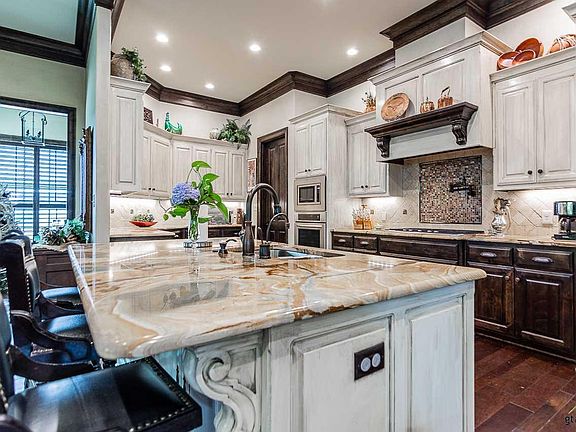 Gorgeous 2012 custom home in the highly desirable community of Bishop's Gate at Oak Hollow. 3100sf garden home, tastefully designed and perfectly located on a near 1/4 acre lot at the end of the cul-de-sac. The open concept floor plan allows for flexible use of the space and great entertaining. Stunning chef's kitchen with fossil granite, endless storage in the custom cabinetry and walk-in pantry, plus the added conveniences of a built-in ice maker and pot-filler over the gas cooktop. The master suite is located on the back of the home and enjoys a sunny sitting room with a gas fireplace and backyard access plus an amazing master bath and custom fitted closet with private access to the laundry. Extra storage above the garage could be finished out for an added bonus room. The backyard is fenced and beautifully landscaped featuring a covered area with built-in grill and sink for dining and lounging with friends. Great location near walking paths, shopping and dining!