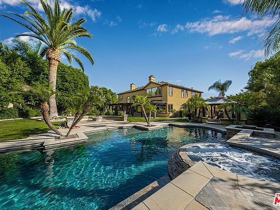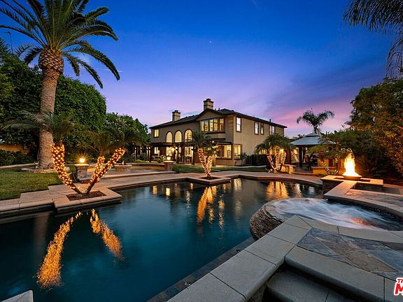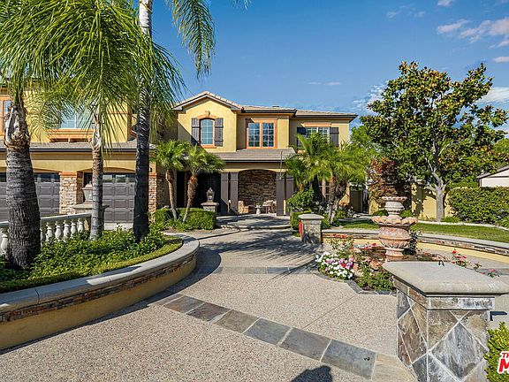 OFFER DEADLINE IS WEDNESDAY, AUGUST 14 at 3:00 PM. Unparalleled luxury at the end of a coveted cul-de-sac. Discover an extraordinary haven of opulence and tranquility in this magnificent 5 bedroom, 5 bathroom estate. This architectural masterpiece redefines resort-style living with a backyard oasis that is pure enchantment. As you step into the home characterized by soaring ceilings, you will be welcomed with an abundance of natural light. The grand living room and dining room will serve as a perfect space for hosting holidays. The gourmet kitchen, a chef's dream, is the heart of the home, perfect for culinary adventures and entertaining guests. A first-floor bedroom with an en-suite bath offers flexibility and convenience. A dedicated executive office/ library provides a serene space for work or relaxation. Indulge in the ultimate retreat within the expansive primary suite, complete with a cozy fireplace and a private gym for those seeking fitness. Upstairs, three additional bedrooms ensure privacy and comfort for family or guests. Step outside to an entertainer's paradise where a sparkling pool with a Baja shelf beckons, surrounded by a luxurious spa, inviting fire pit, and a gourmet outdoor kitchen. Mature landscaping creates a private sanctuary, perfect for al fresco dining or simply unwinding. With a four-car garage and ample space for an ADU, this exceptional property offers unparalleled convenience and potential. Experience the epitome of refined living in this extraordinary residence.