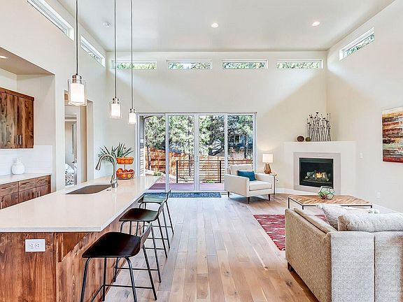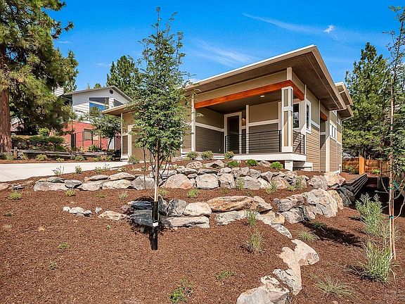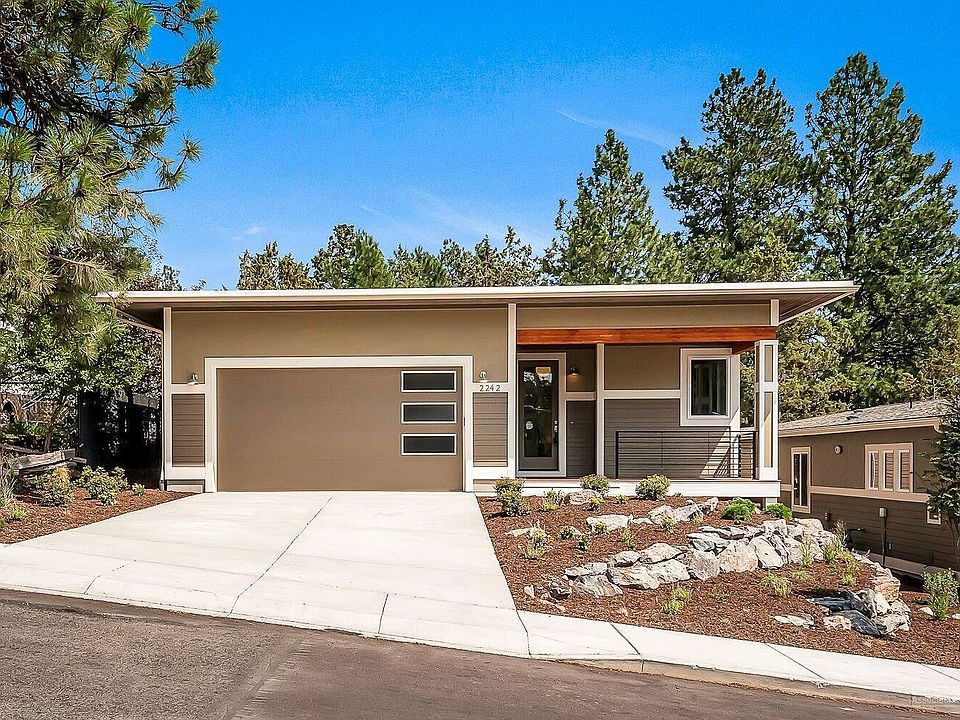 Stunning Arbor Builders new home in a quiet NW Bend neighborhood close to downtown Bend and the river trail. Home inspired by Frank Lloyd Wright's modern Usonian design. The spacious single level home features custom cabinets, hardwood floors, SS appliances, solid surface kitchen/bath counters, vaulted ceilings, separate office, and lots of natural light. Earth Advantage energy saving construction. Large Westside lot with large patio and backyard. The home has been recently completed.