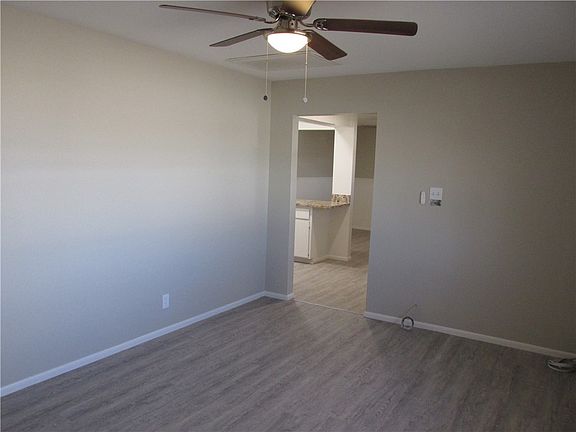 Wonderfully refresh home with new roof, flooring, painted inside & out, new water heater, new bath remodel, new granite countertops, dual pain windows. This is such a cute place, there is a screened in front porch with a big carport to the side. Nice sized kitchen with ample counterspace, gas stove, and pass through to the dining area, big laundry room off the kitchen with extra cabinets and plenty of room for freezers or extra refrigerator or storage. Good sized living room with ceiling fan, two linen closets. Nice big back yard fully fenced and 2 huge shop or storage buildings. Owner/Agent.