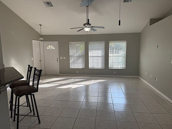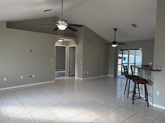 Bright and open 3 bedroom, 2 bathroom home with 2-car garage on a quiet street in Port Charlotte 33954. The home has great curb appeal, and inside you're greeted by a large open living/dining area with vaulted ceilings and tile flooring throughout the main space, making it feel spacious, clean, and easy to maintain. The kitchen features granite countertops, plenty of cabinet storage, matching appliances, and a breakfast bar that opens to the living area, perfect for entertaining or casual meals. Split floor plan gives the primary bedroom extra privacy with its own en-suite bath, while two additional bedrooms and a second full bath work well for guests, family, or a home office. The home also includes a central vacuum system for easy cleaning. A major highlight is the huge screened lanai with paver flooring, ceiling fans, and a private backyard view ideal for relaxing, grilling, or enjoying the Florida weather without the bugs. The long driveway and attached 2-car garage provide ample parking and storage. Lease terms: Monthly rent $1850. Security deposit equal to one month's rent. Due at move-in: first month's rent plus one month's security deposit. Tenant pays all utilities and responsible for lawn maintenance. One small dog only, with landlord approval and a non-refundable pet fee. No smoking inside the home. Minimum 12-month lease. Application requirements: each adult 18+ must complete an application and screening; verifiable household gross income of at least 2x the monthly rent; credit, background, and rental history check; no recent evictions or outstanding landlord judgments. To schedule a showing, please message with your name, number of occupants, pet info (if any), and desired move-in date. Minimum 12-month lease. Due at move-in: first month's rent plus one month's security deposit. Tenant responsible for all utilities and routine lawn care. One small dog only with landlord approval and non-refundable pet fee. No smoking. Household income must be at least 2.25x monthly rent; all adults 18+ must complete application with credit, background, and rental history screening.