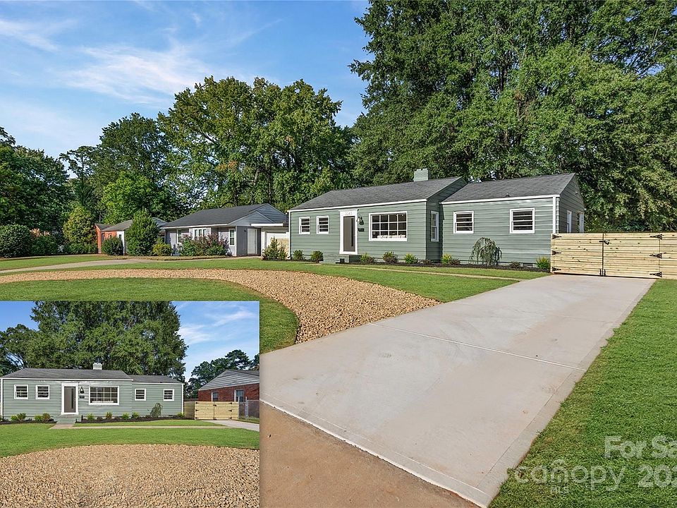 Welcome to 2243 Ashley Road! Complete transformation inside and out - perfectly blending 1950's charm/character with modern day touches throughout. Beautiful curb appeal created by brand new concrete driveway with decorative stone circular driveway for additional parking and ease of access, new crisp exterior paint, new gutters, new front door, exterior lights, mailbox, professional landscaping, and wood accent gates. Step inside the front door and find newly refinished Weathered Oak original hardwood floors, fresh interior paint, updated light fixtures, abundant natural light, sleek Urban Bronze original two panel doors, and restored original vintage door knobs. The spacious eat in kitchen has been renovated with new quartz countertops, brand new stainless steel appliances, brushed gold faucet and cabinet hardware, large undermount sink, custom subway tile backsplash, refinished cabinetry, new LVP floors, light fixtures, new hot water heater with enclosure, and under counter washer/dryer combo unit to convey with property. The third bedroom is currently set up as a home office - flexible floor plan to meet your personal needs. The full bathroom has been remodeled with brand new vanity, sink, faucet, fixtures, mirror, light, dual flush toilet, and new LVP flooring. In the backyard you will find a peaceful and relaxing covered porch overlooking the fully fenced in backyard. The brand new driveway gate opens if you would like to access additional parking in backyard and covered detached carport with shed. Mechanically solid property with 2025 hot water heater, 2012 Architectural roof, and replaced 2011 gas pack/HVAC. Lots of new construction and renovations on same street and surrounding neighborhood streets. Convenient location to Uptown and Airport! AGENTS ARE OWNERS.