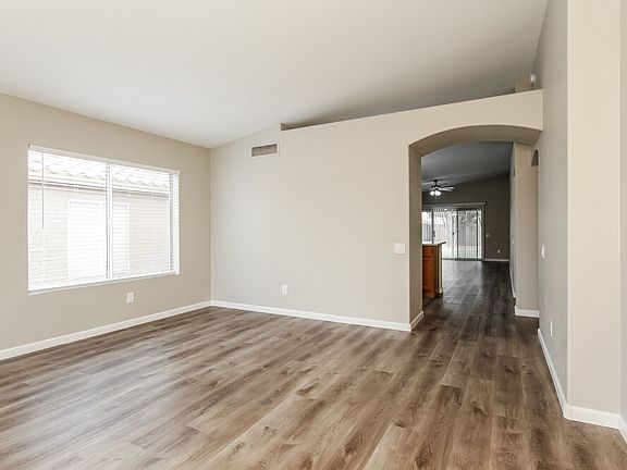 Please note, our homes are available on a first-come, first-serve basis and are not reserved until the lease is signed by all applicants and security deposits are collected. This home features Progress Smart Home - Progress Residential's smart home app, which allows you to control the home securely from any of your devices. Want to tour on your own? Click the "Self Tour" button on this home's RentProgress. Don't miss this move-in-ready rental home in Las Vegas, with three bedrooms and two bathrooms. The home's 1,626-square-foot layout starts with a living room offering several large windows and an angular ceiling with overhead lighting. You'll love the modern feel of the vinyl plank flooring. There's a charming arched doorway leading into the kitchen, which comes complete with granite countertops, stainless steel appliances, and lots of meal-prep space on the center island. The adjacent dining room is quite spacious. A three-panel bay window adds style to the main bedroom suite at the rear of the home. Enjoy plenty of luxury in the suite's private bathroom, which has both a garden tub and a separate shower with a white tile surround. An attached two-car garage and patio complete this home. Tour this pet-friendly property today!