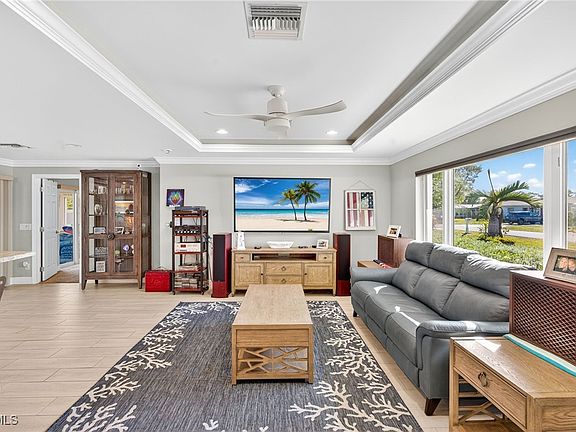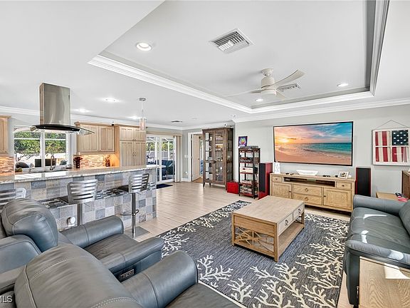 Inside, you'll find an open, modern layout with porcelain plank flooring, tray ceilings, granite counters, Samsung appliances, custom wood cabinetry, and a smart-home system controlling lights, fans, shades, locks, and thermostat. The outdoor living area impresses with a 40’x40’ paver patio, Bull BBQ island, and a 22,000-gallon heated/cooled pool with newer equipment. Impact windows/doors, PEX plumbing, updated electrical, roof, gutters, pool cage, and HVAC with UV and ionizer were all completed in 2017. Additional perks include a 2-car garage, hybrid water heater, 10’x15’ permitted pad for a shed/office, 4-zone irrigation, and generator back-feed. A rare, like-new home in a highly desirable Fort Myers neighborhood.