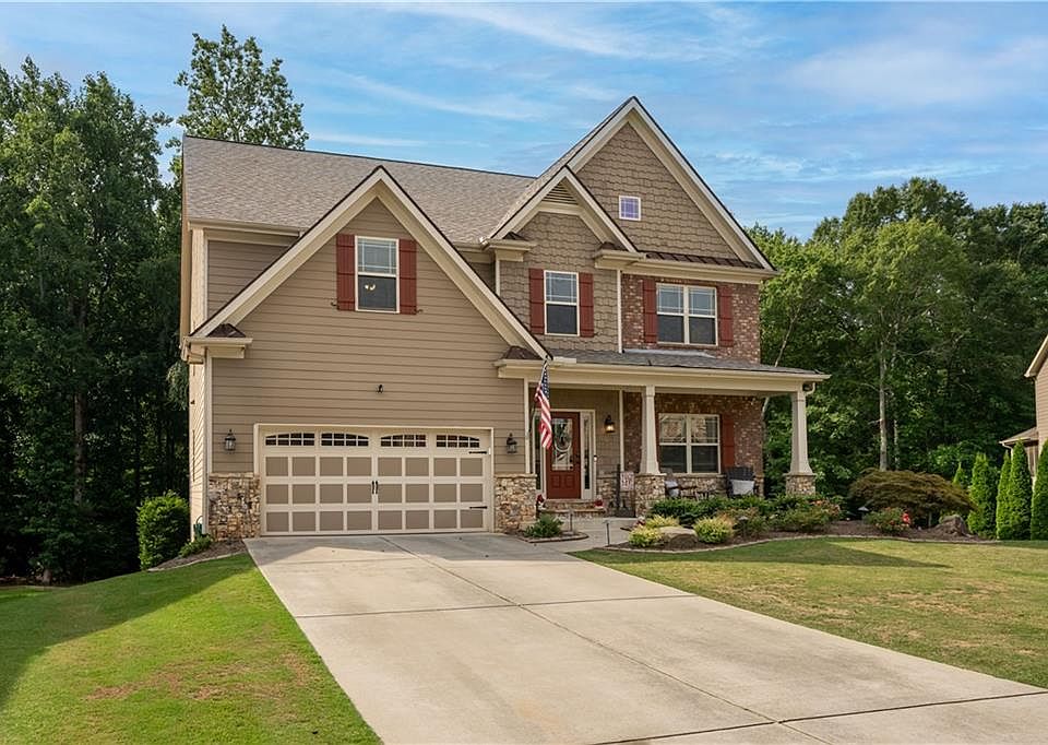 This expansive Craftsman-style home boasts six large bedrooms and four full bathrooms, perfect for accommodating family, friends and guests. Located in desirable Cherokee Bluff school district.  The main level features a guest suite with a full bathroom, ideal for visitors or multi-generational living. Upstairs, you'll find additional spacious bedrooms and baths, including a huge primary suite with a luxurious bathroom. The main level is adorned with beautiful hardwood floors and offers two versatile flex spaces, perfect for a dining room or home office. The gourmet kitchen is a chef's dream, featuring stained cabinets, granite countertops, stainless steel appliances, and a stone fireplace. Enjoy outdoor living with a charming rocking chair front porch and a screened-in back porch complete with a cozy fireplace. The home is set on a huge, lush yard with a flat backyard that backs up to green space, providing privacy and tranquility.  The neighborhood offers an array of amenities, including a pool, tennis courts, sidewalks, and streetlights. Conveniently located close to shopping, restaurants, and award-winning schools, this home provides the perfect blend of luxury and convenience.