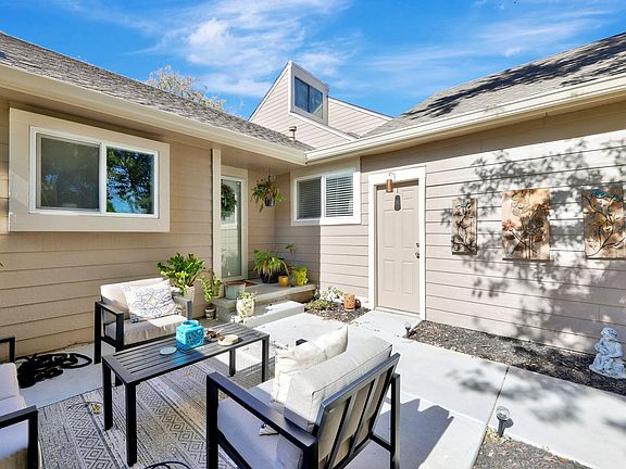Lovely condo just waiting for a new owner! What a welcoming courtyard, and it's just recently been updated with new concrete. The main floor of this home has large living room with vaulted ceiling and cozy fireplace. And what a great view of the lake! Sliding doors open onto a spacious balcony/deck. Kitchen features a pass-through window to dining space - how convenient! Tiled floor and all appliances complete the kitchen. Primary bedroom features a walk-in closet plus another set of sliding doors that open onto the balcony-deck, also. The second bedroom actually has access to the garage. Main floor bathroom has recently been updated with tiled floors and new sink/vanity. Large family room, second bathroom and another finished room are located in this walk-out basement. You are so close to the lake as you walk onto the patio from this level! Lake views on both levels! All 3 Pella sliding doors are newer. And within the last 6 months, new exterior siding and paint! A swimming pool, clubhouse, community clubs and meetings, walking paths and, of course, the lake are all included with this condo.