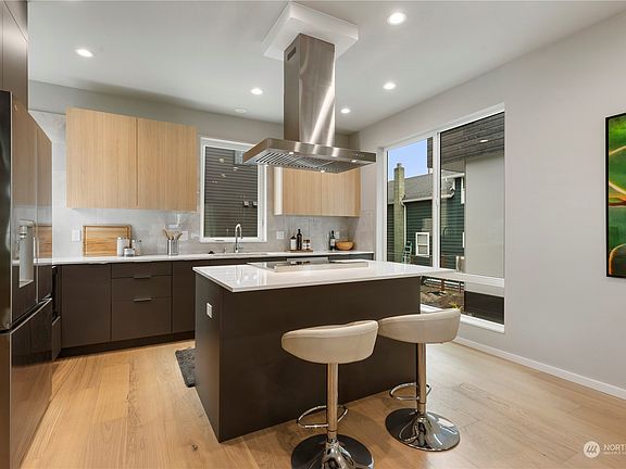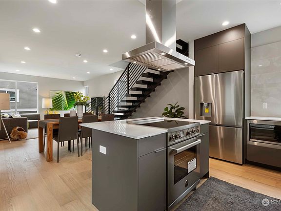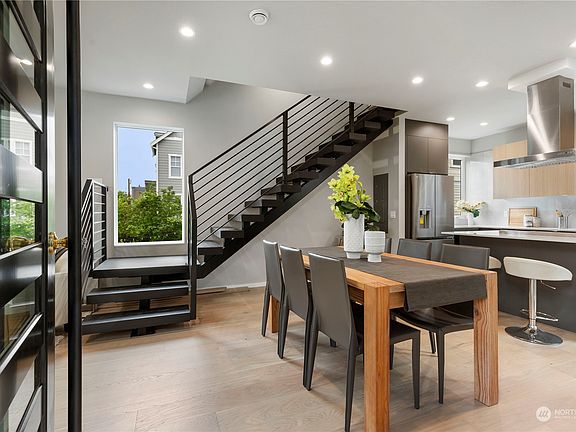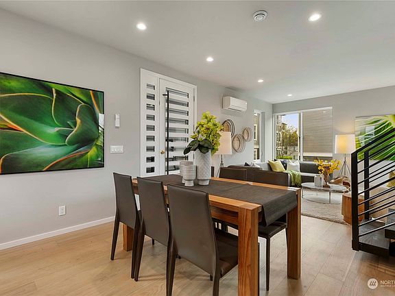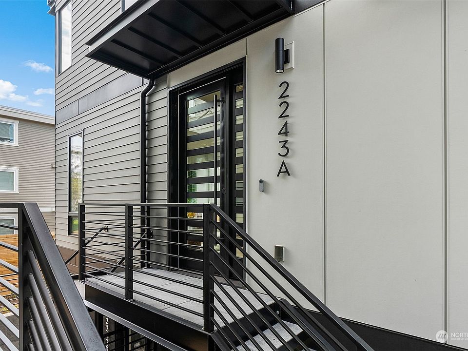 This exceptional new residence, by Flanigan Group Development, features modern design with a flexible floor plan. Legal AADU (2243B) at basement level is unique opportunity for rental income, generational living, nanny, or separate work space. Upper home (2243A) includes custom floating staircase at entry level, gourmet kitchen with induction range and island seating, mini-split heating & cooling at 3 bedrooms and office, quartz counters, hardwood floors and custom built-in closets throughout. Primary suite features a spa-like bath and a wet bar leads up to private roof top deck with beautiful views. All just steps from the heart of Ballard.