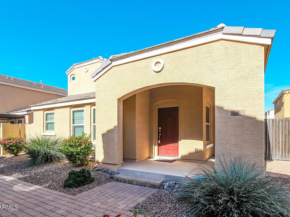 A charming home in the heart of Gilbert. Home features 3 bedrooms and 2.5 bathrooms with a 2 car garage. This home offers tile and vinyl wood flooring throughout the home. High ceilings and lots of natural light with an open feel. The kitchen features stainless steel appliances and ample cabinet and counter space. The main bedroom has an ensuite bathroom. Covered patio for easy maintenance. Neighborhood covers front yard and pest control in HOA dues for easy maintenance. Neighborhood features plenty of parks, greenbelts, walking paths and includes 3 community pools with clubhouse. One pool being heated.