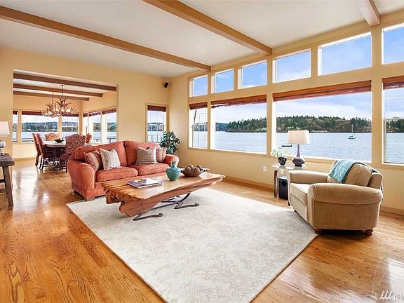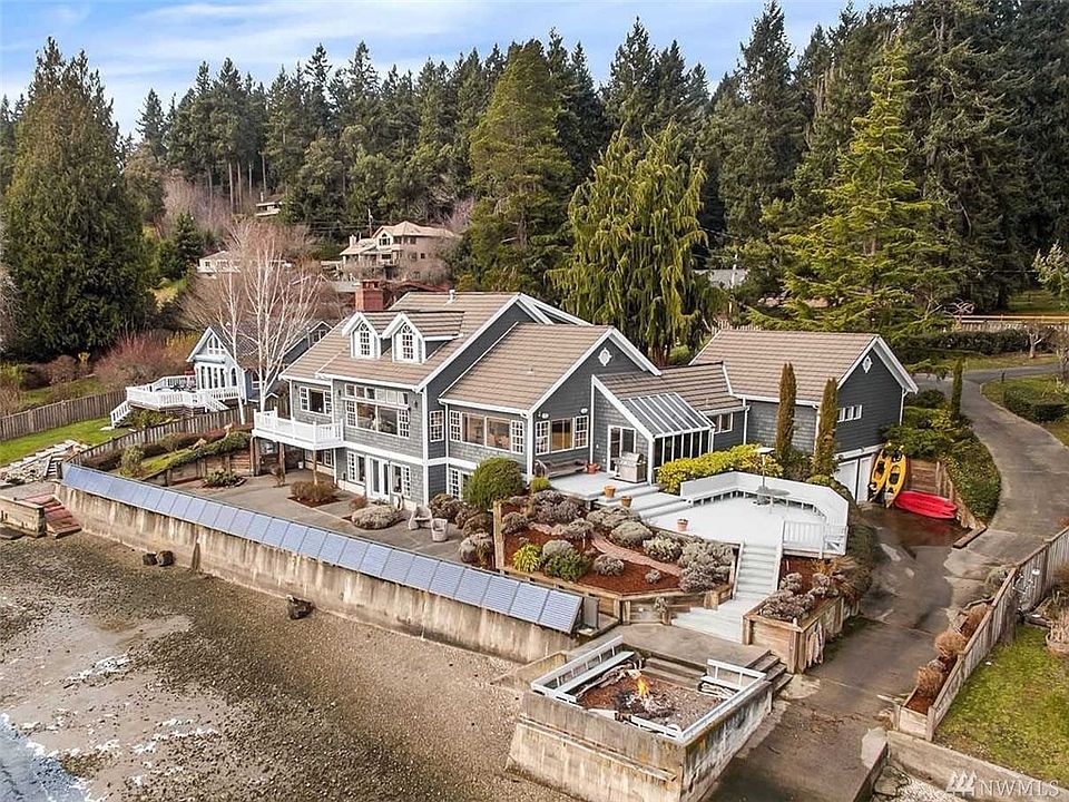 Best sunny location, fine craftsmanship, 150' south-facing, no-bank waterfront. Versatile floor plan, large private guest suite, many extra finished rooms with water view. Large decks, patio, concrete boat launch ramp, water's edge fire pit, shop area, sweeping views of Quartermaster Harbor, Mt Rainier and marinas. Built-in Bose sound. Large view solarium/office, 5 ½ baths, exercise room, TV room with bar, mstr suite with fireplace, view deck.Solar and nat'l gas.Two tax lots with tidelands incl.