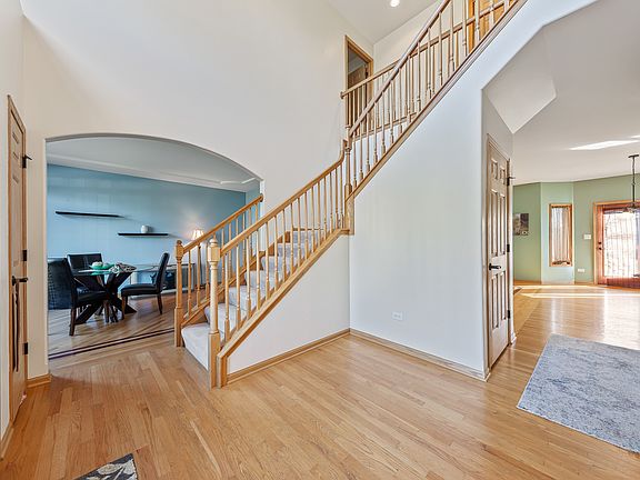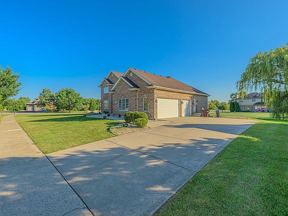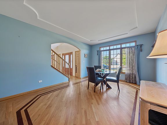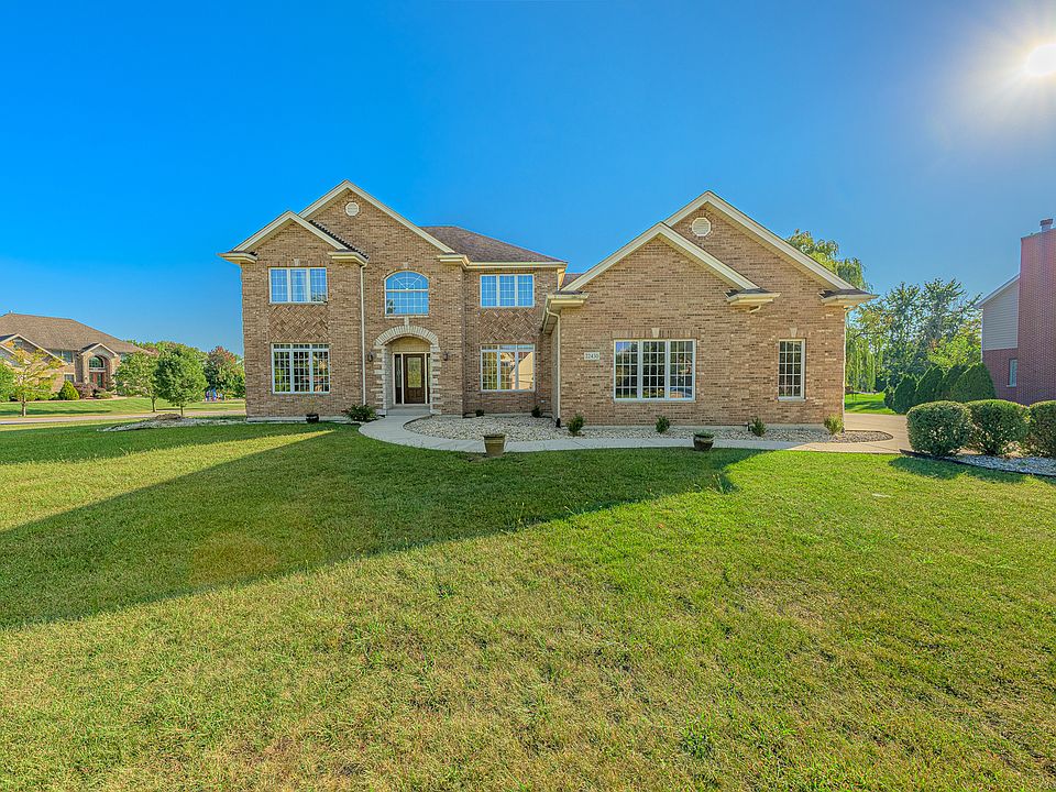 Welcome to this custom 2-story home in Lakeview Estates of Frankfort, perfectly set on an oversized corner lot adjacent to North Park with a playground and scenic pond. The inviting interior boasts 9-foot ceilings, arched entries, rounded corners, hardwood flooring, and 6-panel doors throughout. An open floor plan seamlessly connects the two-story foyer, formal dining room, formal living room, family room with cozy fireplace, and a well-appointed kitchen with an island, granite counters, stainless steel appliances, and walk-in pantry. A main floor bedroom or flex space offers versatility for an office or guest room, while the second floor features 4 spacious bedrooms including a serene master suite. The finished basement adds to the living space with a theater room and abundant storage, while the backyard provides a large deck for entertaining and outdoor enjoyment. Completing this impressive home is a 3-car garage and a desirable location just minutes from Downtown Frankfort, beautiful parks, and the award-winning Lincoln-Way School District.